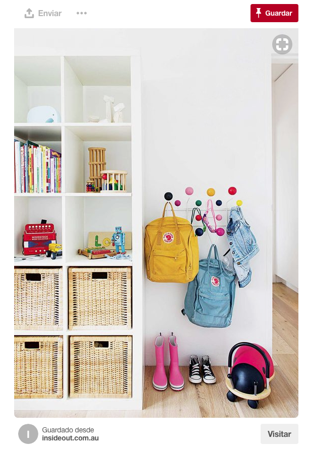 Se pueden utilizar cajas, ganchos, percheros, repisas o canastos, e incluso con etiquetas para ayudarles a aprender dónde van las cosas y por ende, dónde encontrarlas o guardarlas.