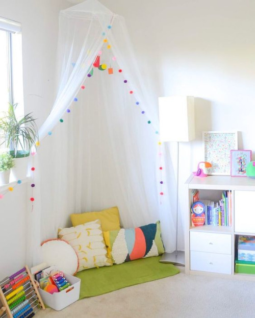 La palabra “rincón” es tal cual una esquina de la habitación condicionada con cojines, tapete, una manta, una maceta linda y un pequeño canasto o estante a su altura para los libros.